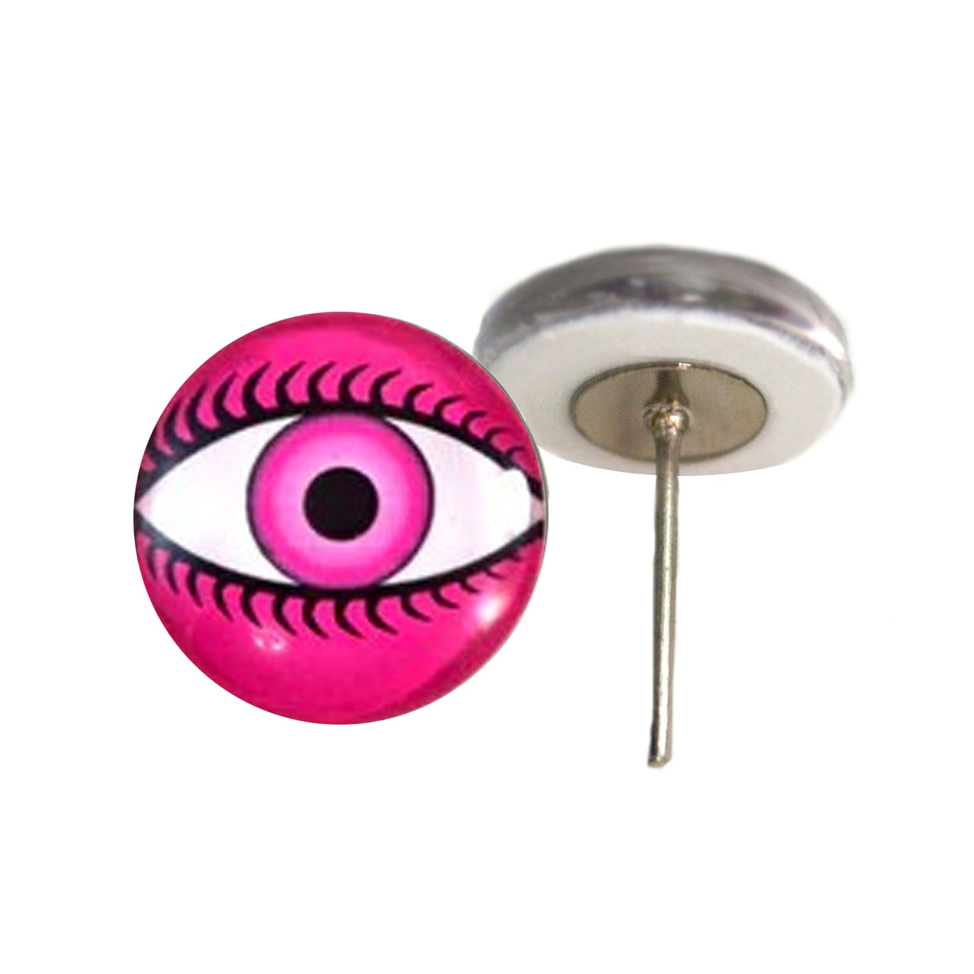 These wire pin post glass eye cabochons are made with high quality card stock print-out of the original digital designs and attached to a glass cabochon dome with diamond glaze resin and attached to the silver toned post backings.