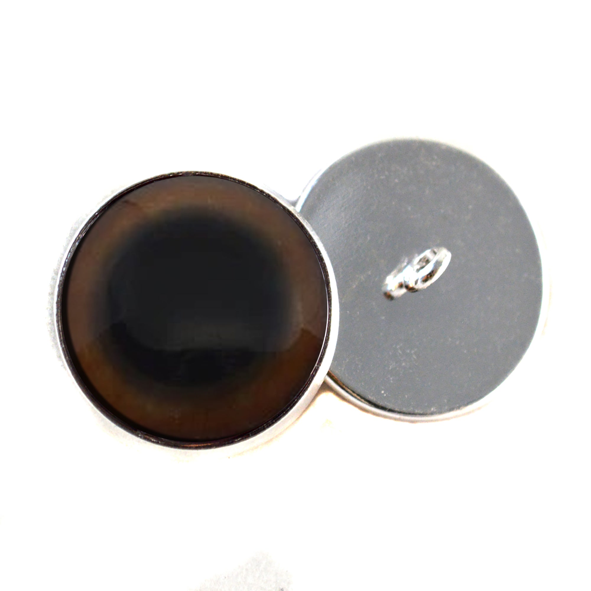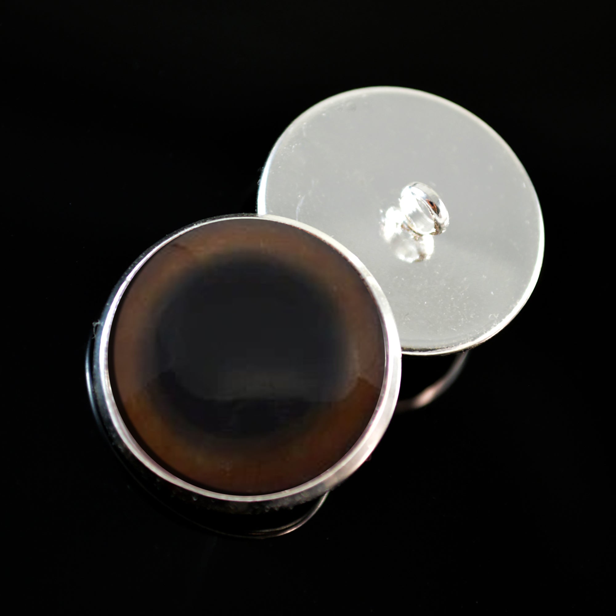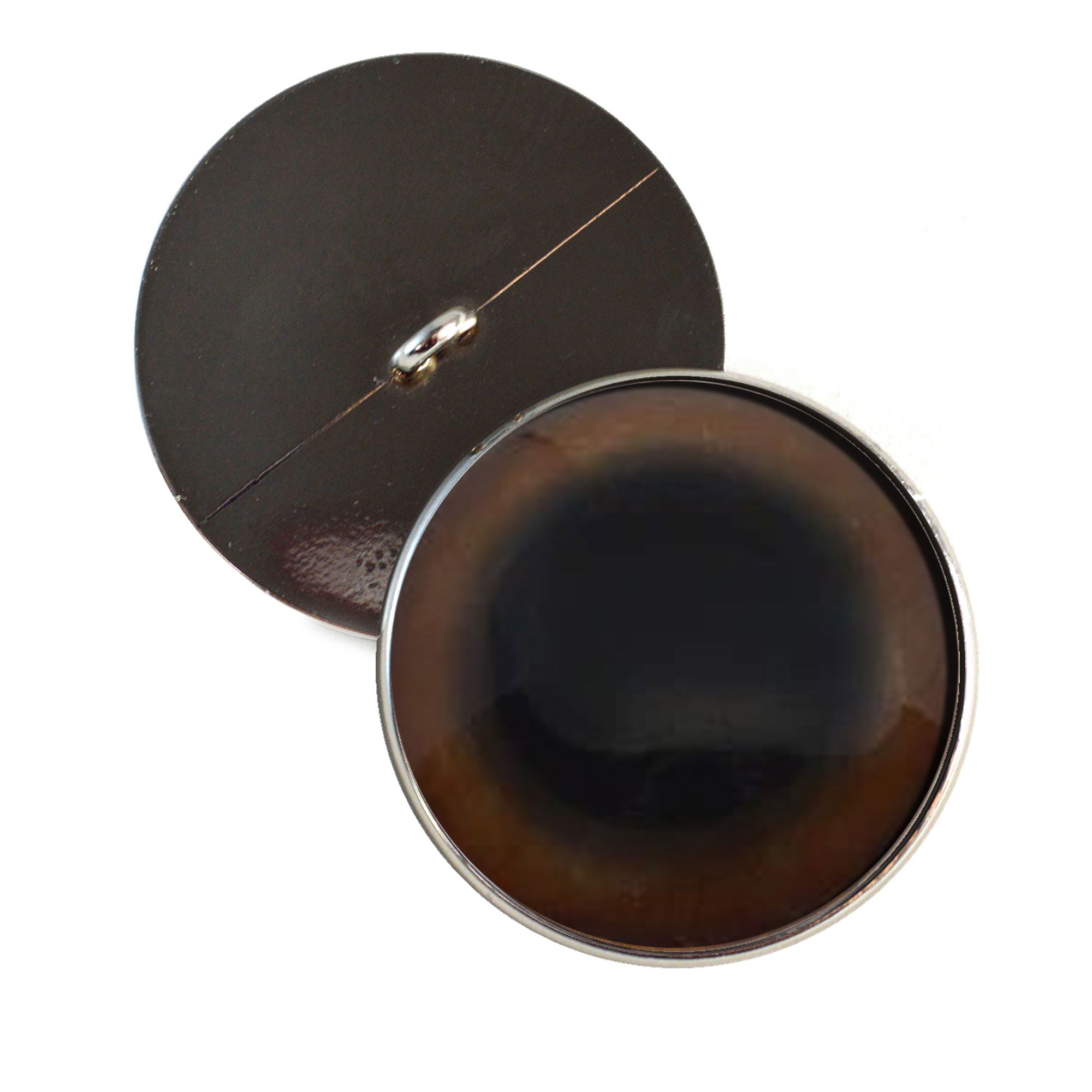 These glass eyes are buttons with a loop on the back of their silver-colored metal settings. This pair of glass eyes is perfect for creating your stuffed or crochet animal creature or soft sculpture, or for use in creative jewelry making.