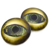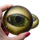 These monster glass eyes contain reptile style black pupils surrounded by olive green colored irises that are sure to capture plenty of attention and fascination.