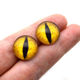 These handmade glass dragon eyes depict golden yellow dinosaur eyes.