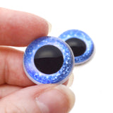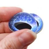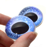Make an impact on your project with these enchanting, blue, white and black twinkling starry galaxy style glass eye cabochons.