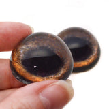 This glass eye design is available as a pair of high domed, half round glass eyes in sizes 40mm, 30mm, 25mm, 20mm, 16mm, and 10mm.