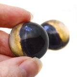 These handmade, hemisphere glass eyes depict enthralling, realistic cross-eyed possum animal irises that will enchant onlookers.