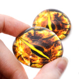 These handmade, hemisphere glass dragon eyes depict detailed fractal dragon irises that will enchant onlookers.