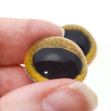 These handmade, hemisphere glass eyes depict realistic, yellow owl bird irises inspired from the wise birds.