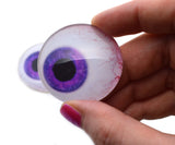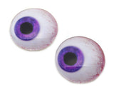 This glass eye design contains a white sclera with thin red veins surrounding a violet purple iris and solid black pupil.