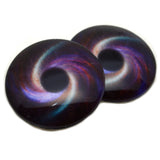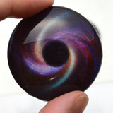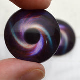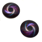 An intricately detailed, Rainbow Spiral Galaxy glass eye design. This rich purple influenced rainbow colored, round pupil glass eye will draw attention and add a touch of glimmering life to your creations.