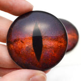 An intricately detailed, Striking Red Galaxy Dragon glass eye design. This rich purple colored, round pupil glass eye will draw attention and add a touch of glimmering life to your creations.