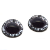 These handmade, hemisphere glass eyes depict striking, dark steely gray human style irises that will enchant onlookers.
