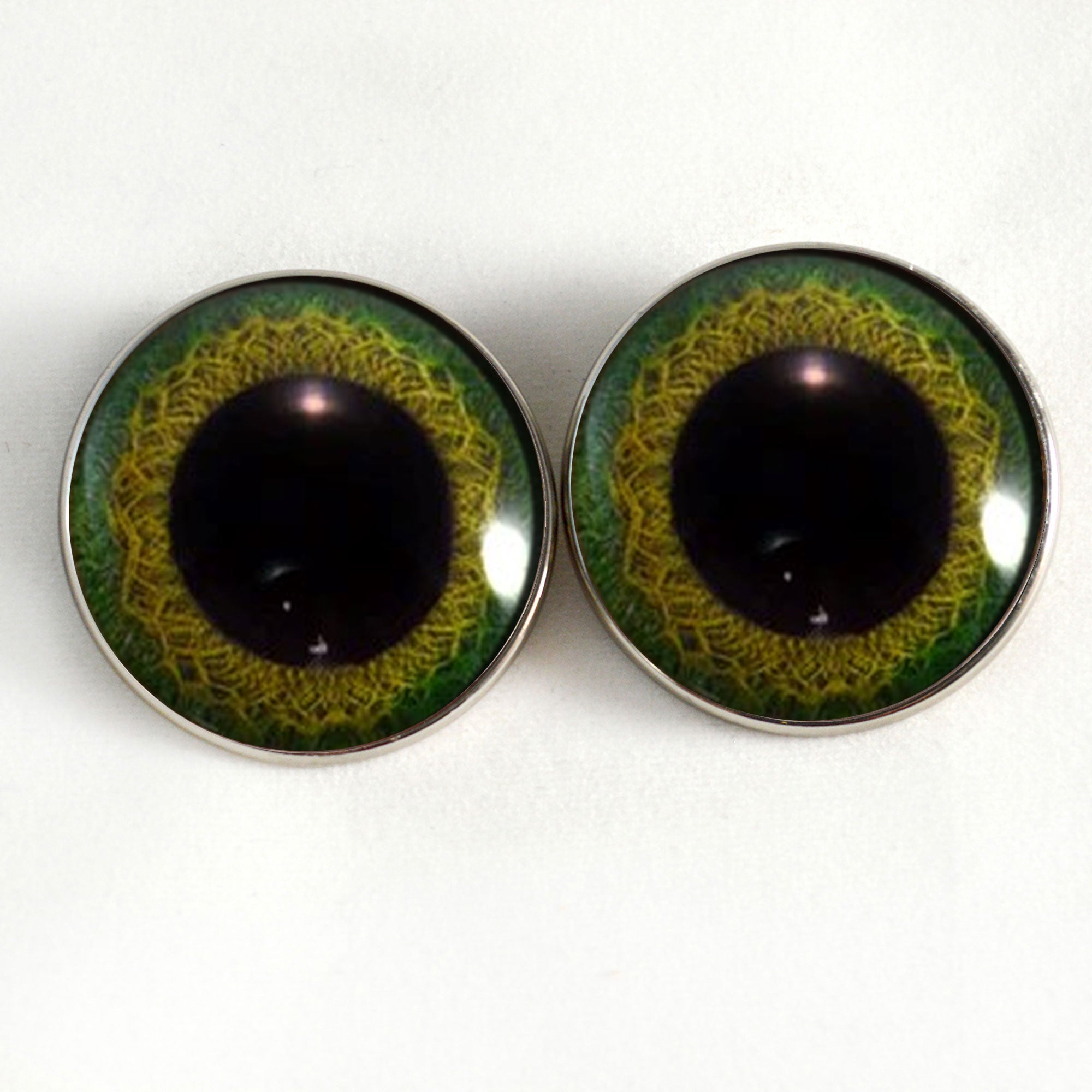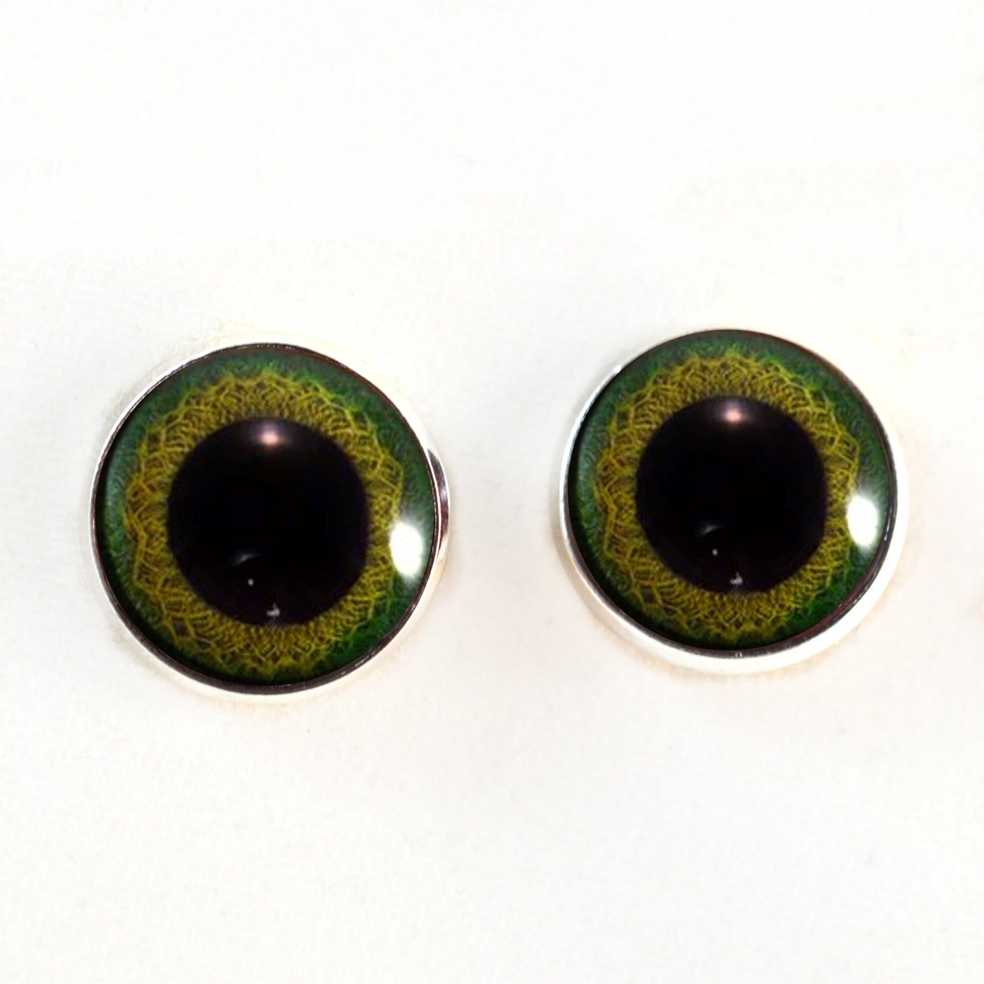 The glass eyes set in the silver-toned sew-on bezels measure 10mm, 16mm, 25mm, or 30mm around.