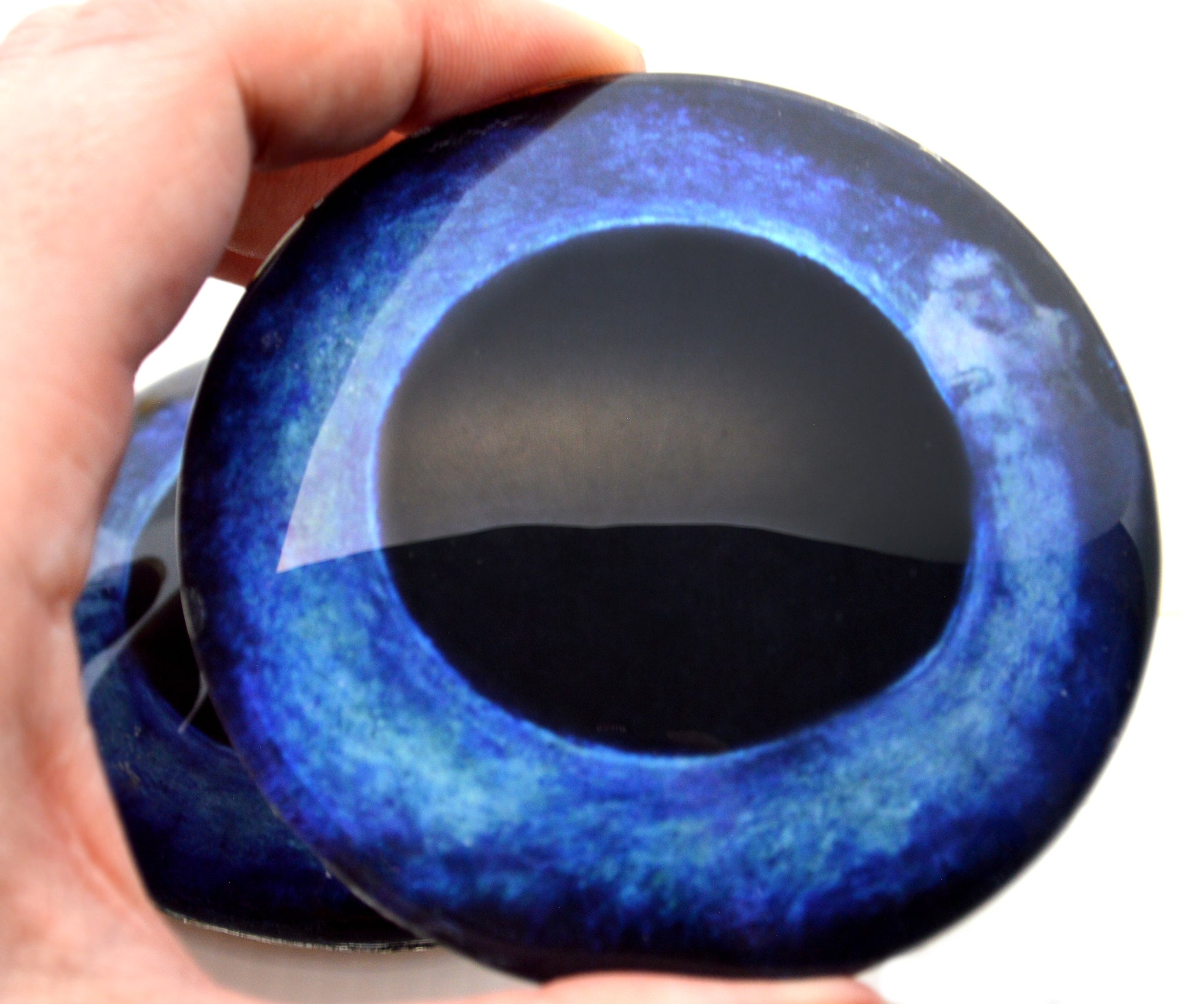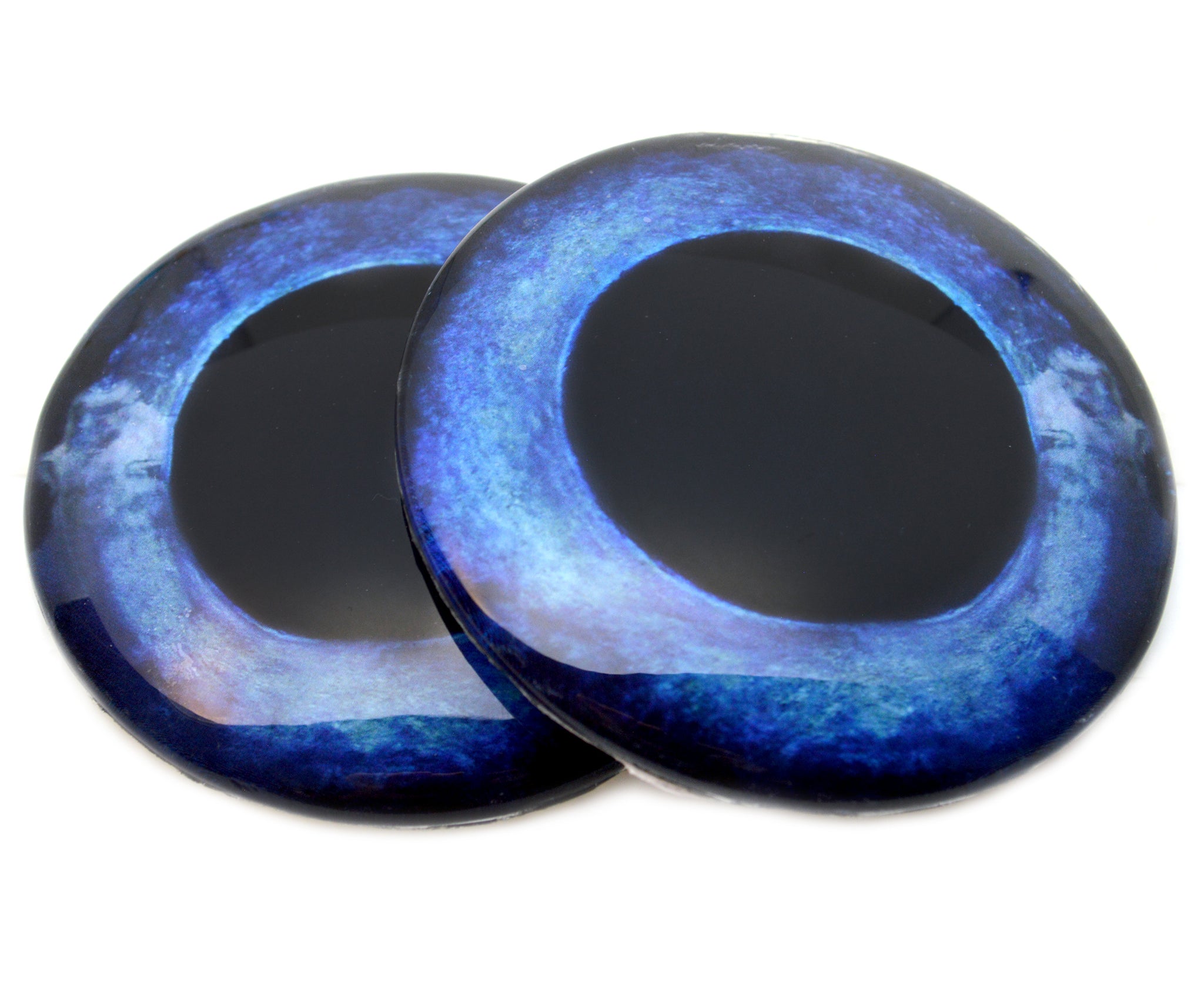 This glass eye design is available as a single eye or pair of eyes in sizes 78mm, 60mm, 50mm, 40mm, 30mm, 25mm, and 20mm, and as a pair of eyes in 16mm, 14mm, 12mm, 10mm, 8mm, and 6mm.