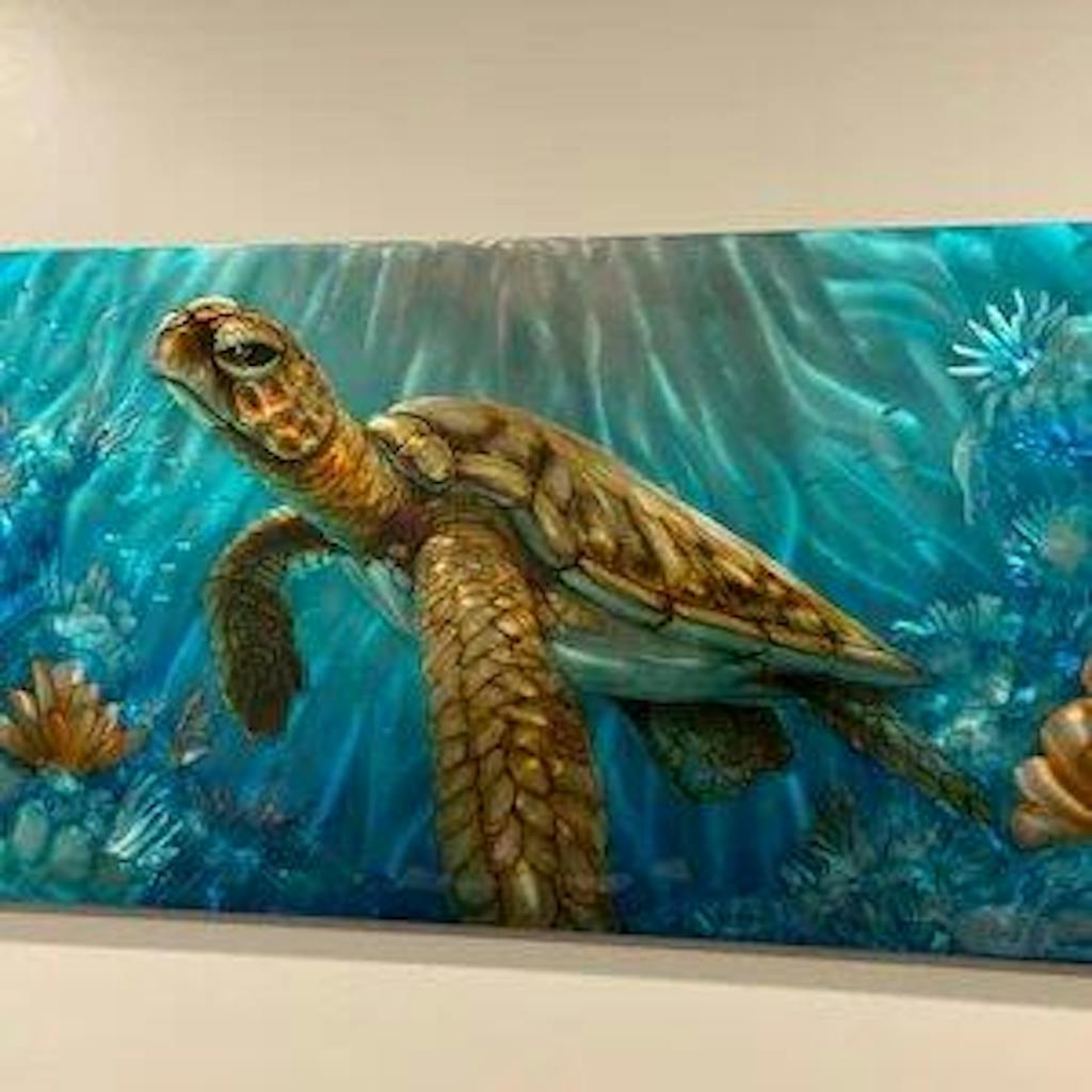 Reflections pictured are from the lighting on the glass. There are no manufactured reflections within the design itself.