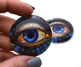 Make an impact on your project with these enchanting stained glass inspired glass color eye cabochons. These  detailed and enchanting eyes are contain detailed irises surrounding striking pupils and eyelash details.