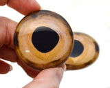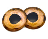 Make an impact on your project with these realistic, textured tan beige fish inspired glass cabochons. These true-to-life fish eyes are contain detailed irises surrounding wide, teardrop-shaped, mirrored irises.