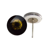 They are made with high quality, handmade glass eye cabochons, attached to silver toned wire pin posts.
