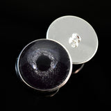 These button-backed cabochons are made with high quality card stock print-out of the original digital designs, and attached to a glass cabochon dome with diamond glaze resin and attached to the silver toned button setting.