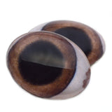 This glass eye design is available as a single eye or pair of eyes in sizes 30mm x 40mm, and 18mm x 25mm, and as a pair of eyes in 13mm x 18mm.