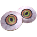These magical glass eyes contain piercing black cat diamond pupils surrounded by brown and green cat-style irises and bloodshot white scleras that are sure to capture plenty of attention and fascination.