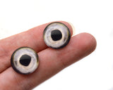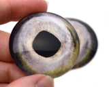 This glass eye design is available as a single eye or pair of eyes in sizes 78mm, 60mm, 50mm, 40mm, 30mm, 25mm, and 20mm, and as a pair of eyes in 16mm, 14mm, 12mm, 10mm, 8mm, and 6mm.
