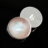 These button-backed cabochons are made with high quality card stock print-out of the original digital designs and attached to a glass cabochon dome with diamond glaze resin and attached to the silver toned button setting.