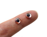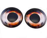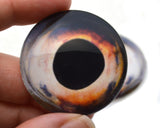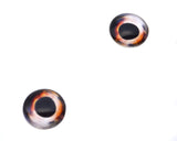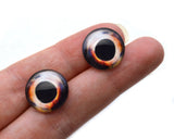 Make an impact on your project with these realistic, textured cod red-orange and black saltwater fish inspired glass cabochons. These detailed lifelike fish eyes are contain detailed irises surrounding teardrop shaped, mirrored irises.