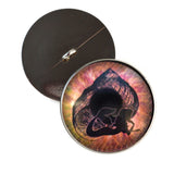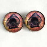 These button-backed cabochons are made with high quality card stock print-out of the original digital designs and attached to a glass cabochon dome with diamond glaze resin and attached to the silver toned button setting.