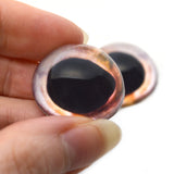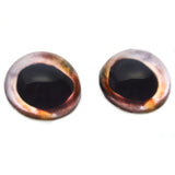 This glass eye design is available as a pair of high domed, half round glass eyes in sizes 40mm, 30mm, 25mm, 20mm, 16mm, and 10mm.