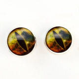 These glass eyes are buttons with loops on the back of their silver-colored metal settings. This pair of glass eyes are perfect for creating your stuffed or crochet animal creature or soft sculpture, or for use in creative jewelry making.