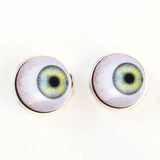 These glass eyes are buttons with a loops on the back of their silver colored metal settings. This pair of glass eyes is perfect for creating your stuffed or crochet animal creature or soft sculpture, or for use in creative jewelry making.
