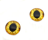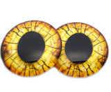 Unleash prehistoric power in your creations with these Yellow Raptor Dinosaur Glass Eyes Cabochons. Featuring a blazing golden-yellow iris laced with dark, crackled details and a piercing black pupil, these eyes capture the fierce, predatory gaze of a raptor frozen in time.