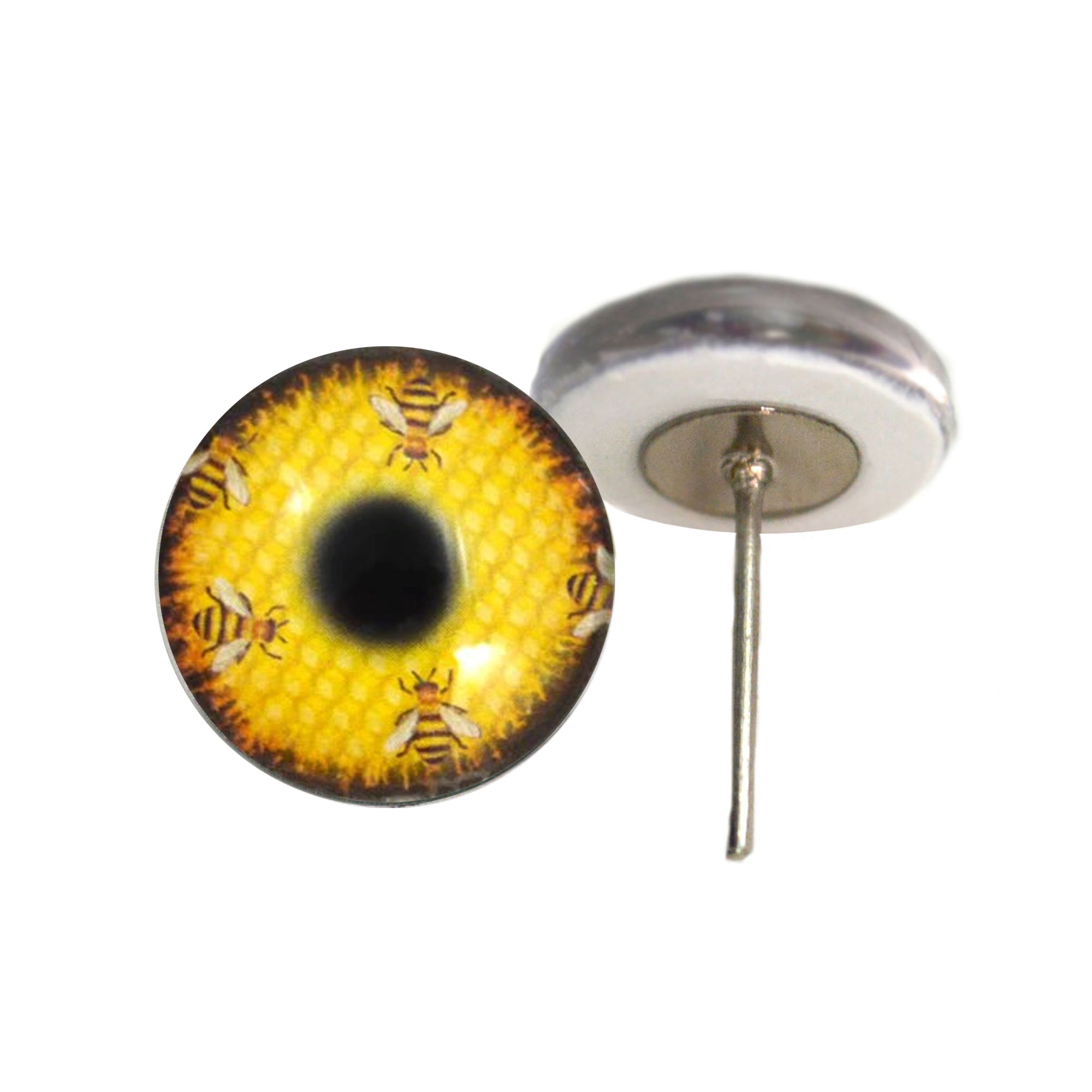 These wire pin post glass eye cabochons are made with high quality card stock print-out of the original digital designs and attached to a glass cabochon dome with diamond glaze resin and attached to the silver toned post backings.