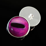 These tantalizing sew on button glass eyes depict intelligent, fuchsia and magenta octopus eyes.