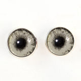 These glass eye cabochons are set in silver toned metal button bezels with sew-on loops on their backs. These sew-on glass eyes are perfect for soft sculptures, plushies, stuffed animals, and as buttons for unique clothing.