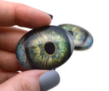 These oval-shaped, scary glass eyes feature intricate details drawn from the depths of a dark forest, enchanting viewers with their unique character. Crafted with a fantasy aesthetic, the Forest Creature Oval Glass Eyes are sure to turn your project into a conversation piece. Use these mesmerizing irises to bring life to your creations.