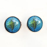 These button-backed cabochons are made with high quality card stock print-out of the original digital designs, and attached to a glass cabochon dome with diamond glaze resin and attached to the silver toned button setting.