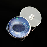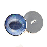 These button-backed cabochons are made with high quality card stock print-out of the original digital designs, and attached to a glass cabochon dome with diamond glaze resin and attached to the silver toned button setting.